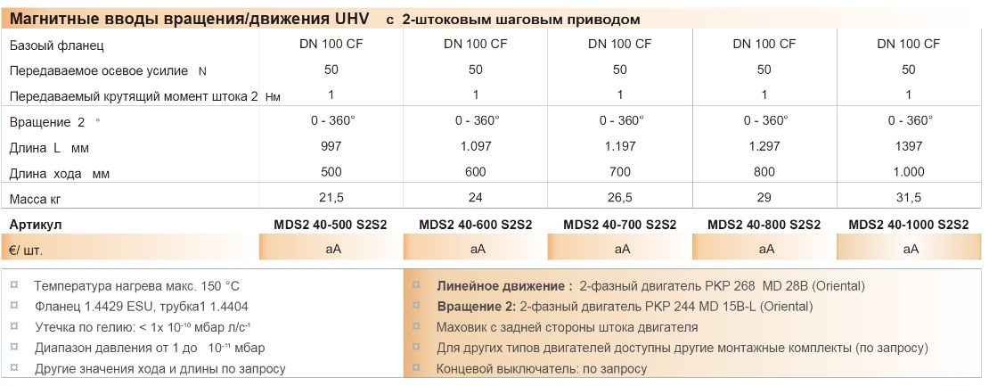 Магнитные вводы вращения/движения UHV с 2-штоковым шаговым приводом