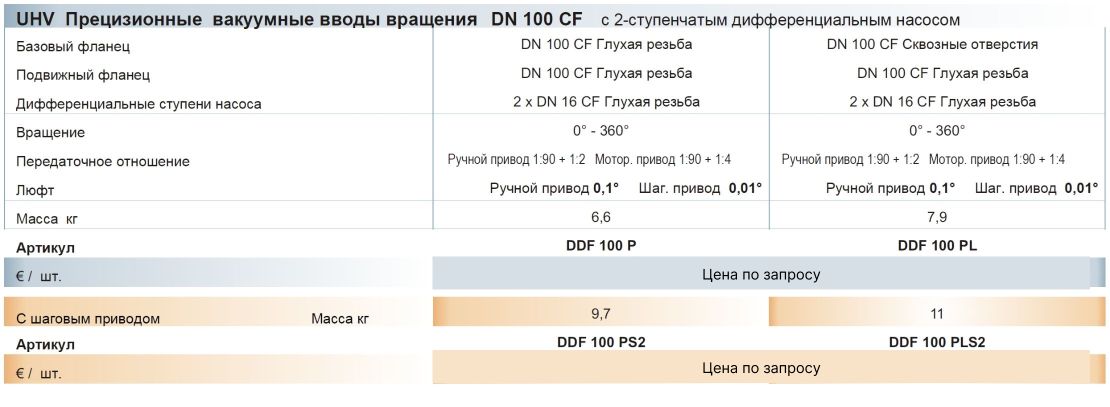 Прецизионные вакуумные вводы вращения DN 100 CF