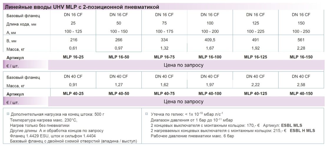 Линейные вводы UHV MLP с 2-позиционной пневматикой