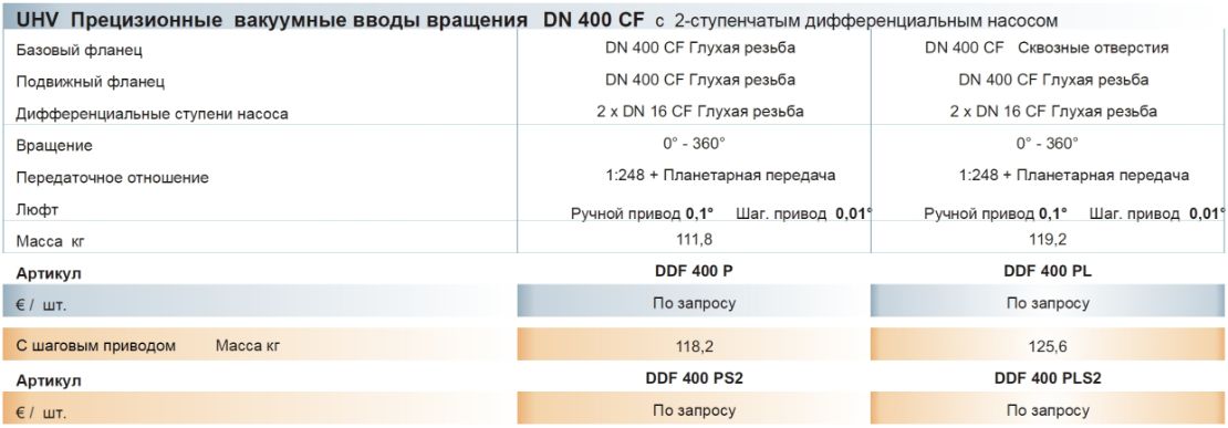 Прецизионные вакуумные вводы вращения DN 400 CF