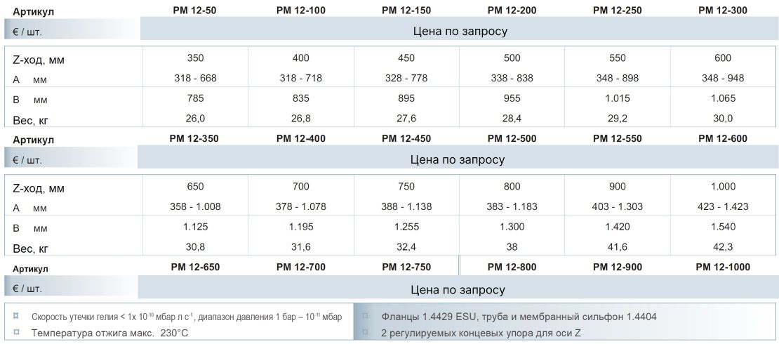 Сверхвысоковакуумные (UHV) манипулятор PM 12