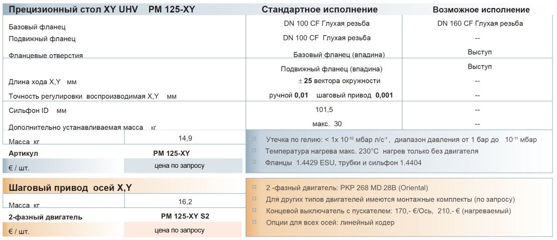 Прецизионный стол XY UHV PM 125-XY