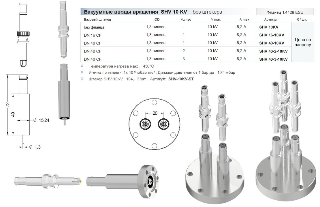 Вакуумные вводы вращения SHV 10 KV без штекера