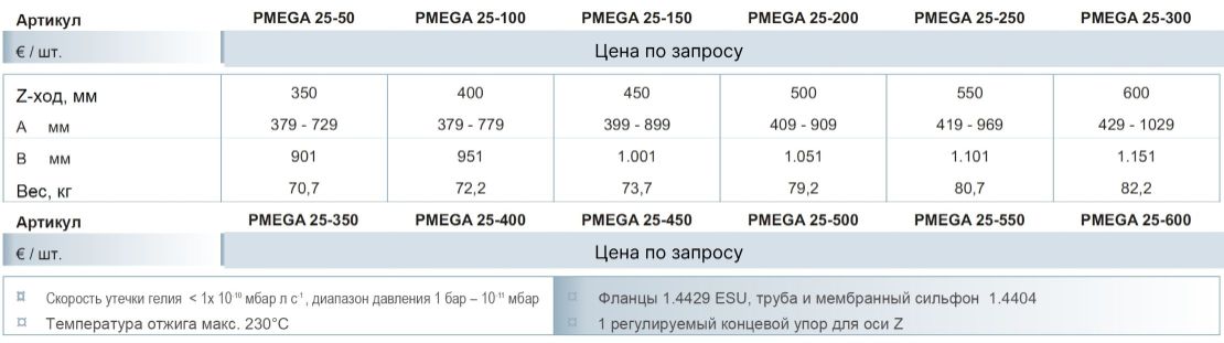 Сверхвысоковакуумный (UHV) прецизионный манипулятор PMEGA 25