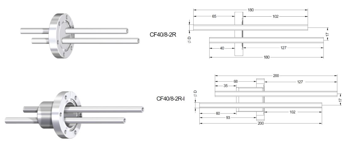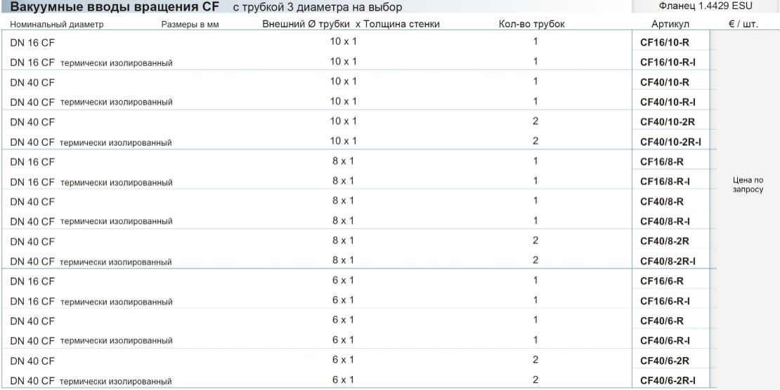 Вакуумные вводы вращения CF c трубкой 3 диаметра на выбор